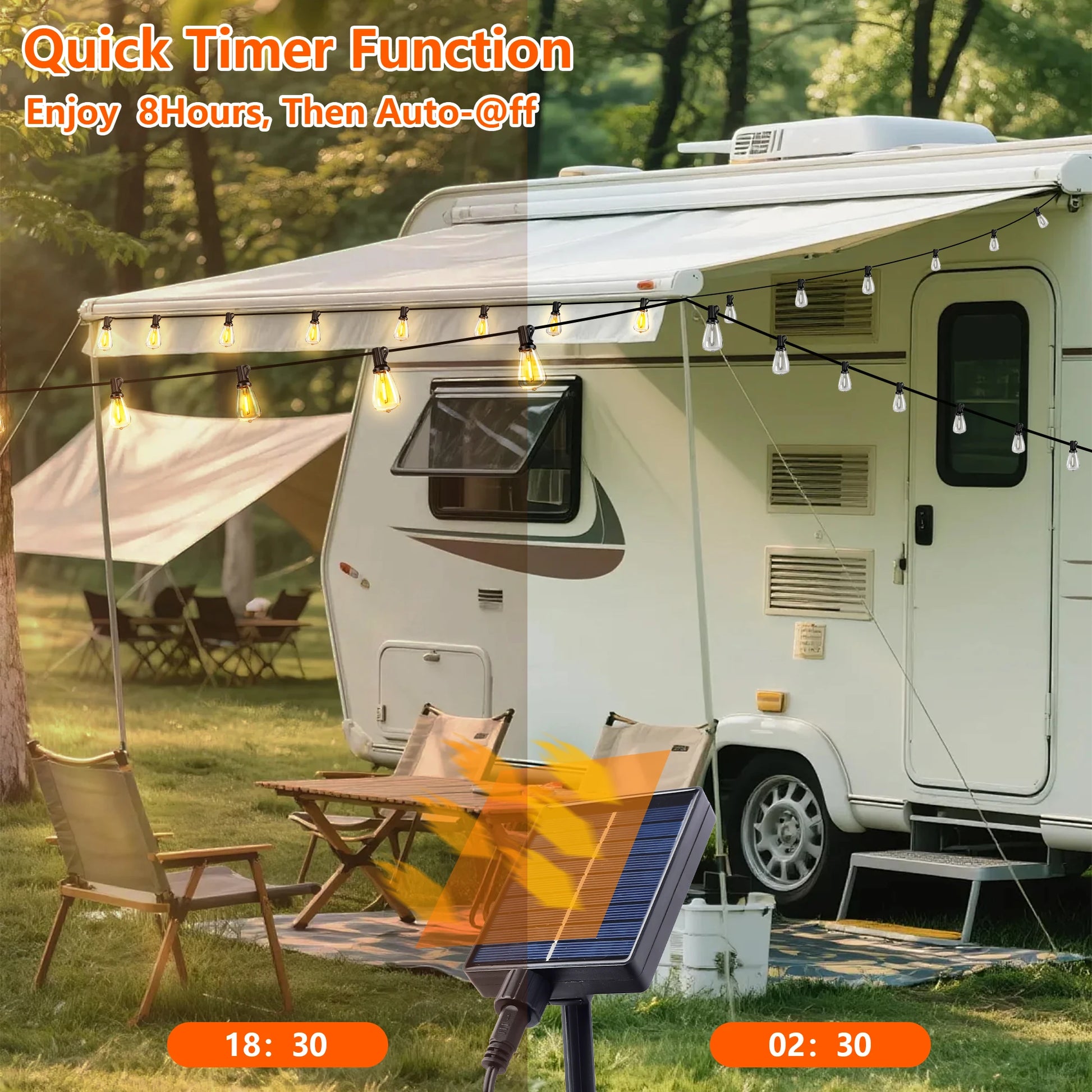 Turn any outdoor space into a warm, inviting retreat with the 100Ft Solar Outdoor String Lights IP65 Waterproof With Replaceable Bulbs. engineered for long evenings outdoors, these lights blend a timeless amber glow with modern reliability, making them perfect for patios, decks, campsites, RV setups, or festive garden decor.