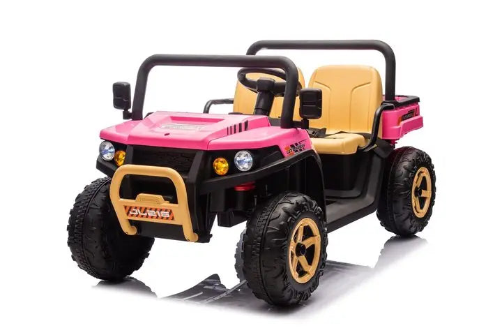 Meet the ultimate outdoor companion for growing kids: a rugged, two‑seater ride‑on dump truck powered by a 24V system. Built for durability and family fun, this electric UTV blends power, safety, and entertainment for ages 3–6. With a metal chassis, four EVA tires, and a 4x35W motor setup, it delivers a confident, smooth ride across lawns, driveways, and light off‑road terrain.