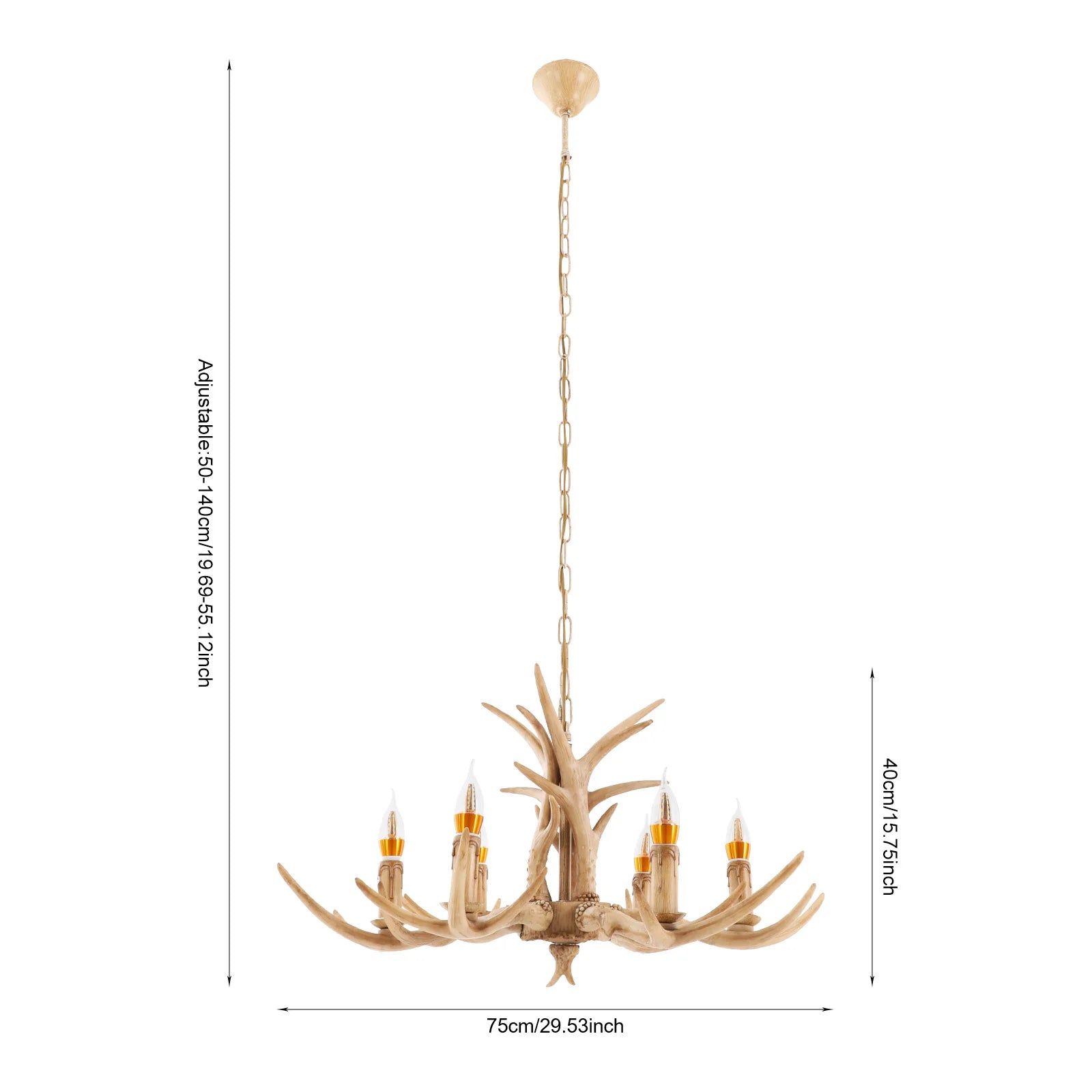Elevate your dining or living space with the 6 Light Adjustable Antler Chandelier—a stunning fusion of rustic charm and timeless craftsmanship. Designed to evoke the forest deity motif, this wood-and-resin centerpiece brings a natural, pastoral elegance to restaurants, cafes, bars, or your home.