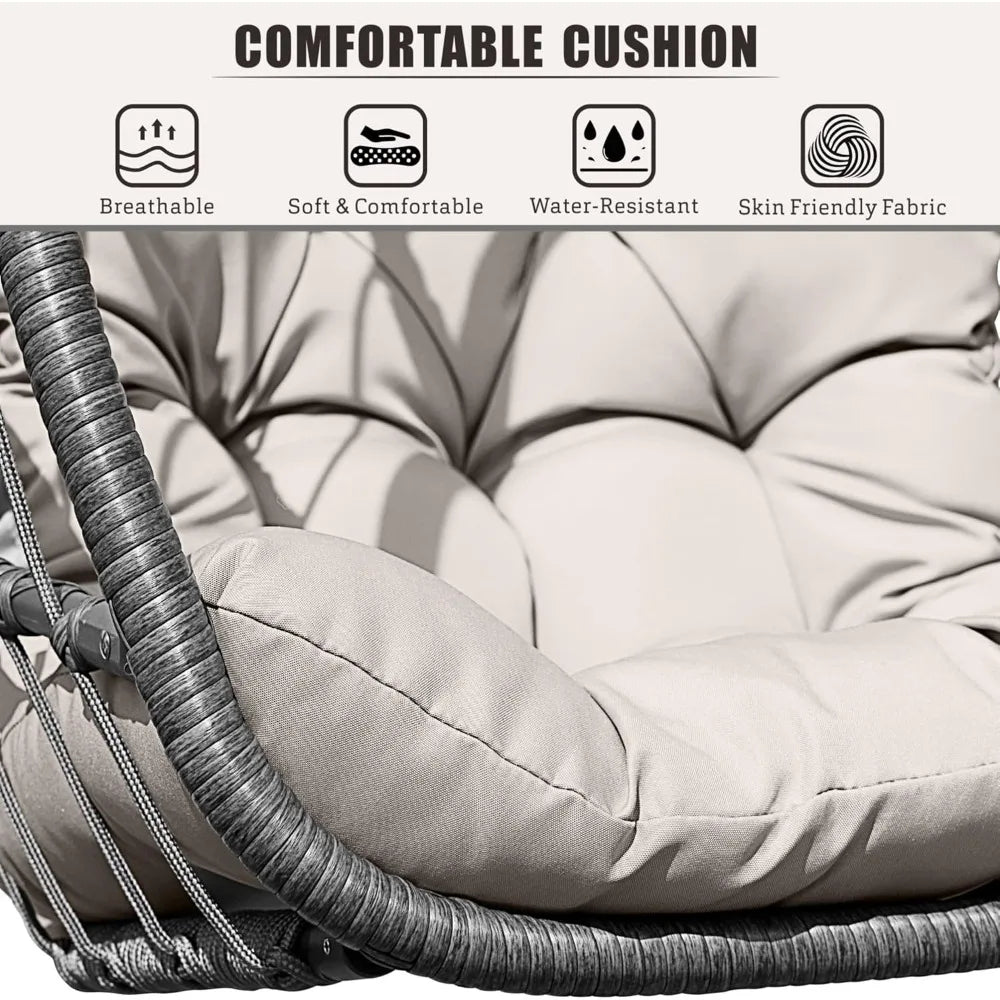 Experience ultimate leisure with the Hanging Egg Chair With Stand Beige Patio Wicker Hammock With Cushion Outdoor. This indoor/outdoor chair redefines relaxation with an oversized, ergonomically designed seat that invites you to unwind for hours. The thick cushion and headrest cradle you in comfort, making it the perfect retreat on a sunny patio or cozy living space.