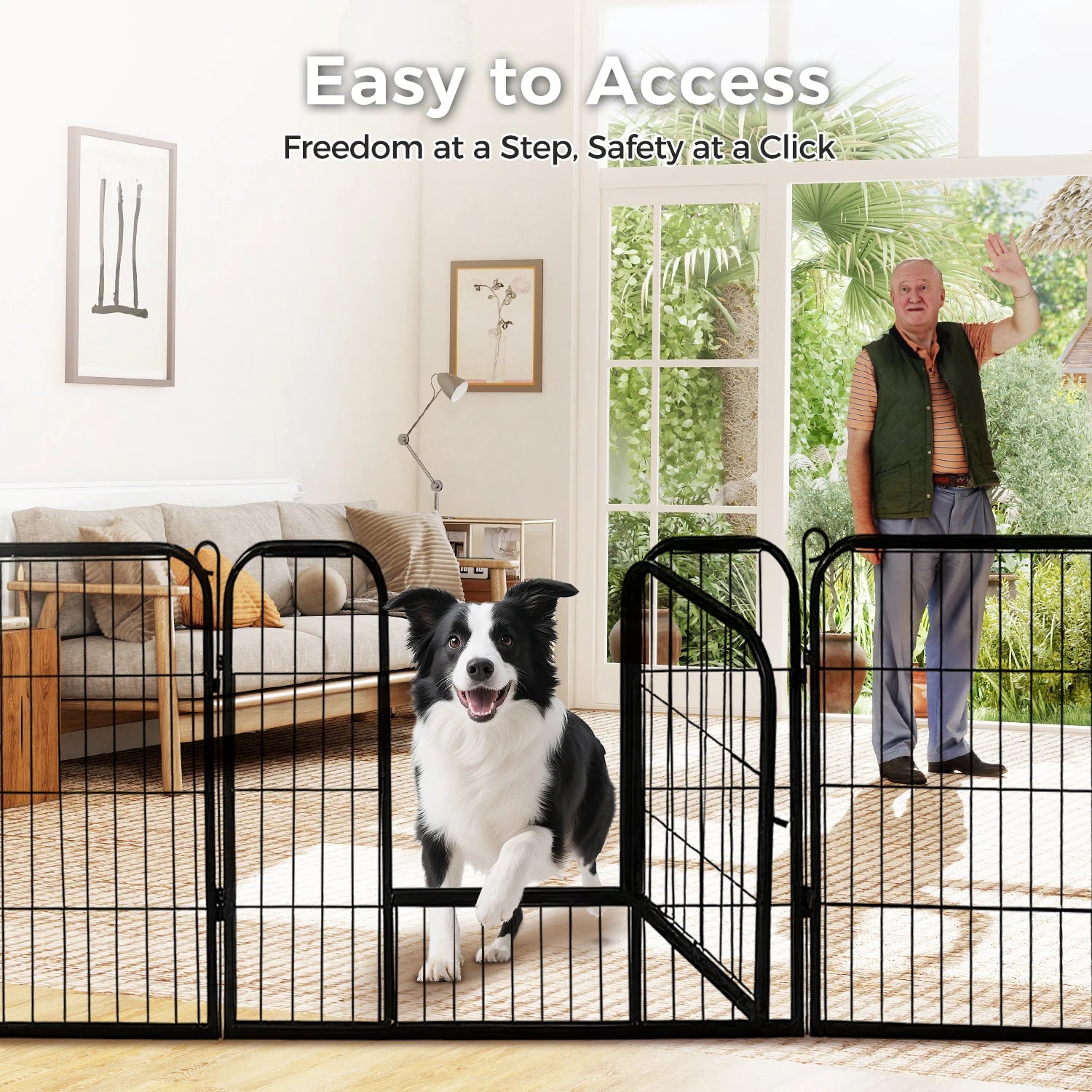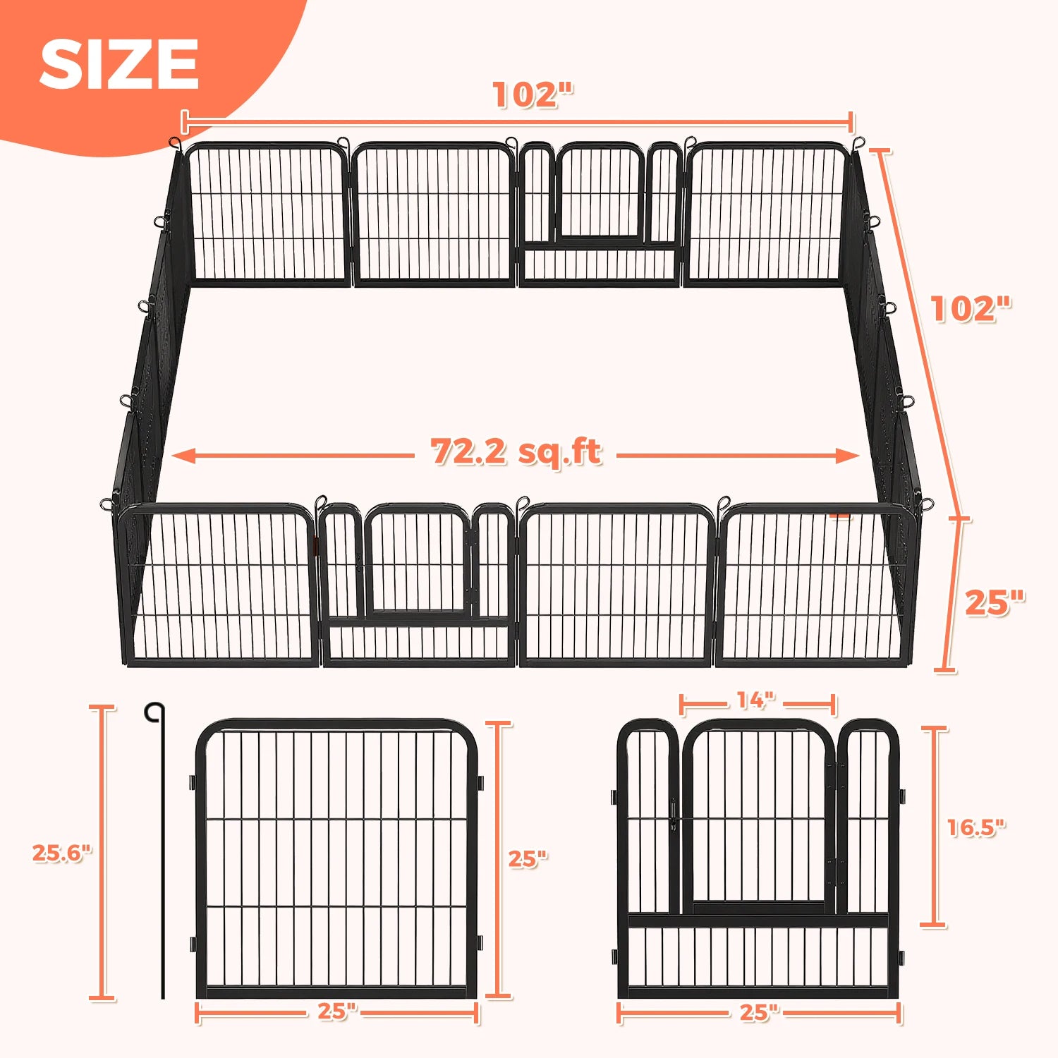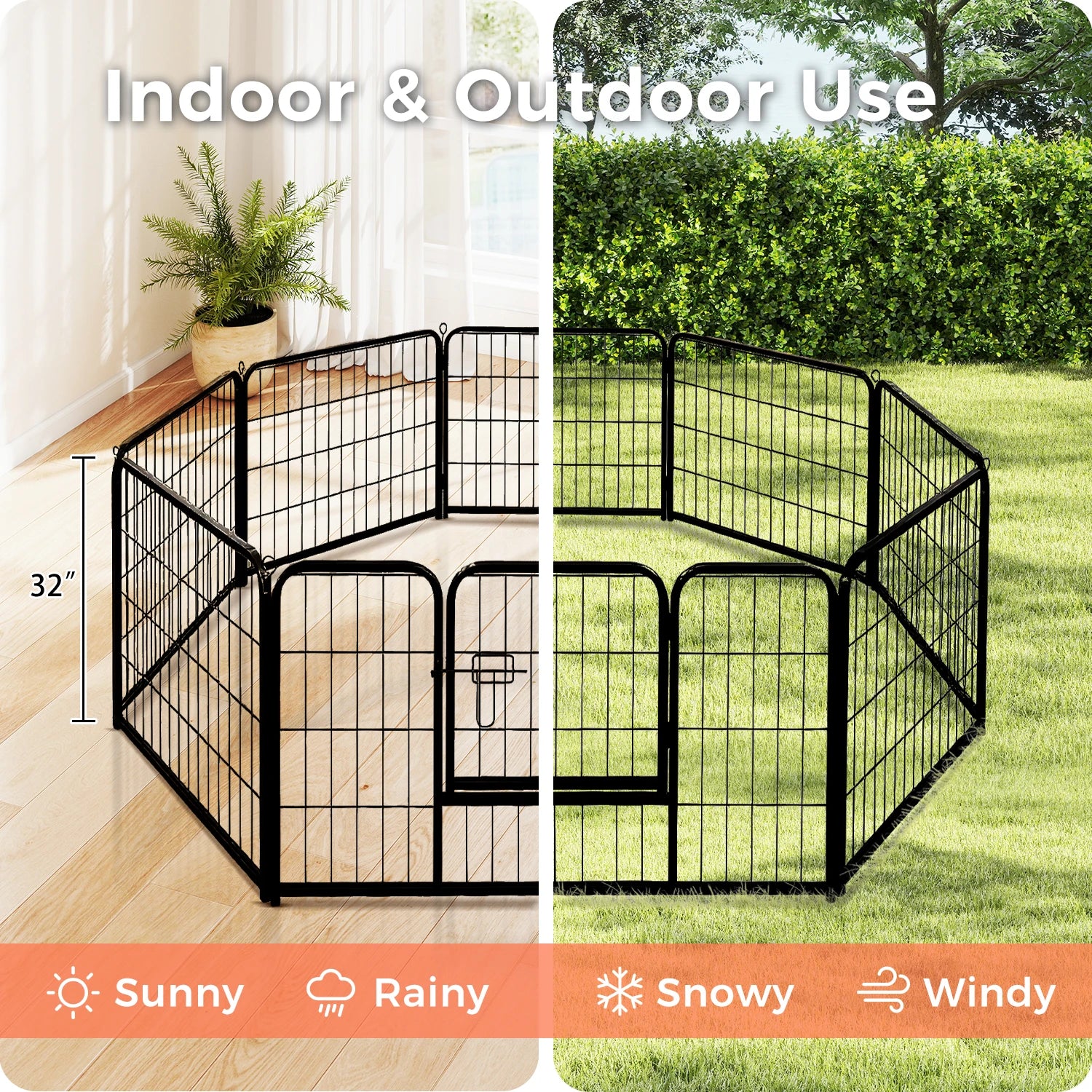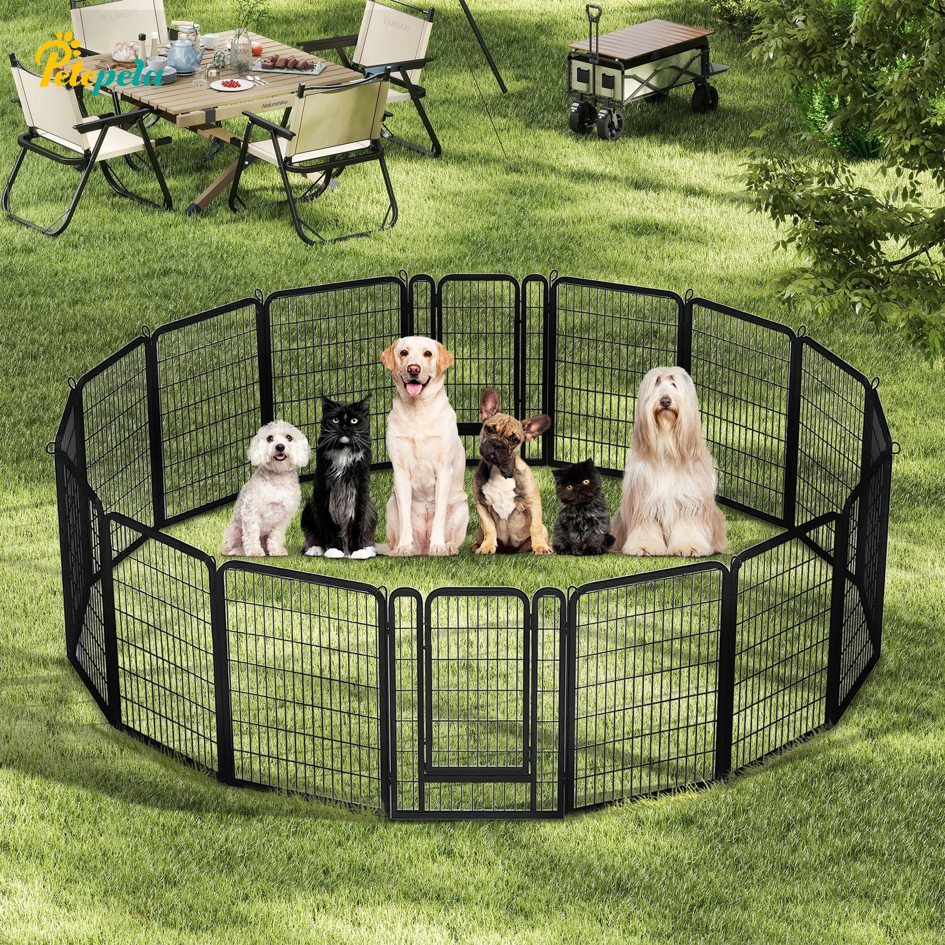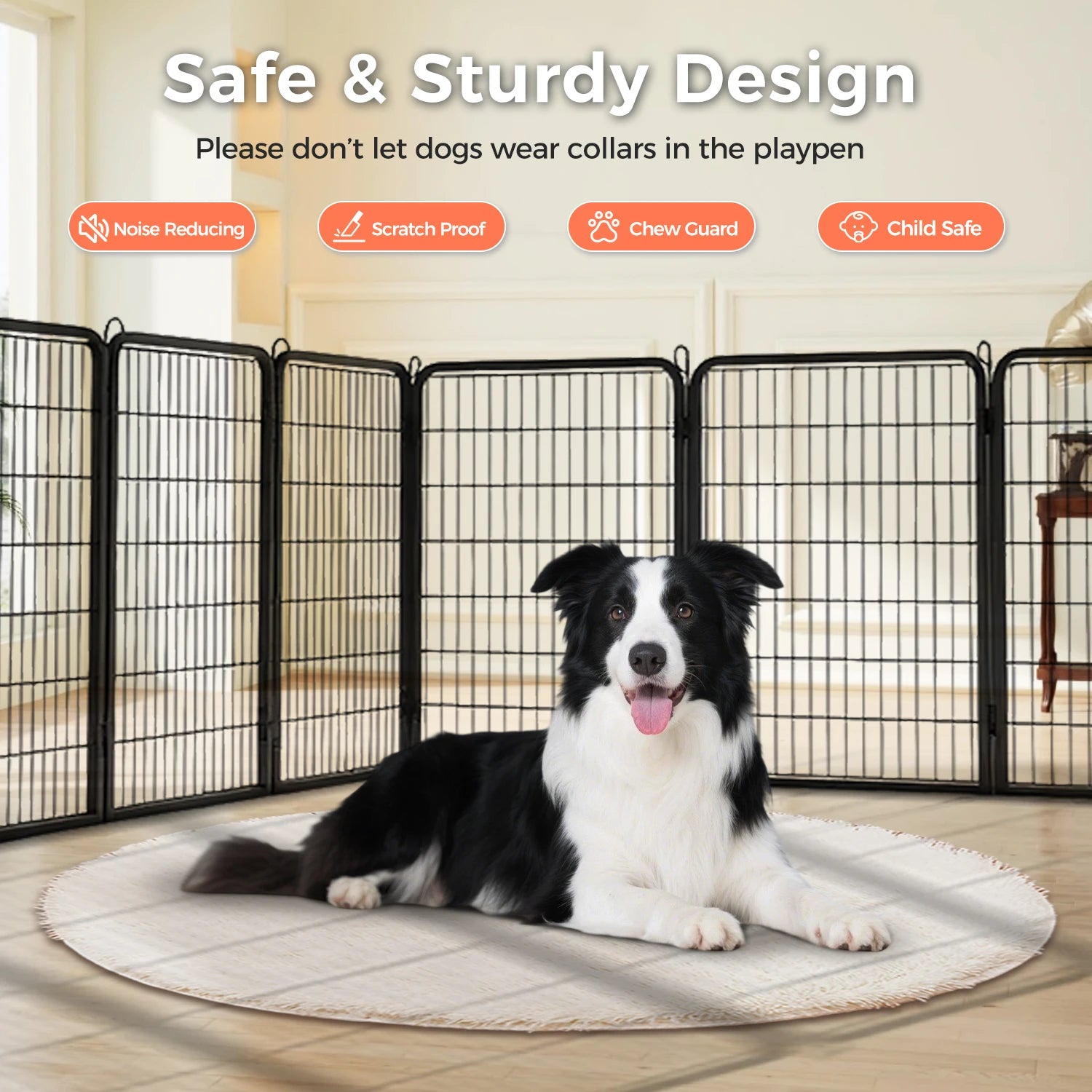 Heavy-Duty Metal Puppy Playpen – 24", 32" or 40" panels with 8 or 16 sections, crafted for durability and versatility in any environment. Designed for indoor use and outdoor adventures, including RV camping, yards, and gardens. This is more than a dog fence—it's a flexible exercise space that grows with your pet.