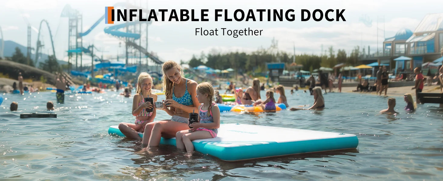 Use the inflatable floating dock as a floating retreat for lounging, sunbathing, and socializing. It’s perfect for swimming, snorkeling, yoga on the water, or simply enjoying a lakeside picnic. The modular D-rings allow you to create a larger platform by linking several docks for bigger groups and more fun.