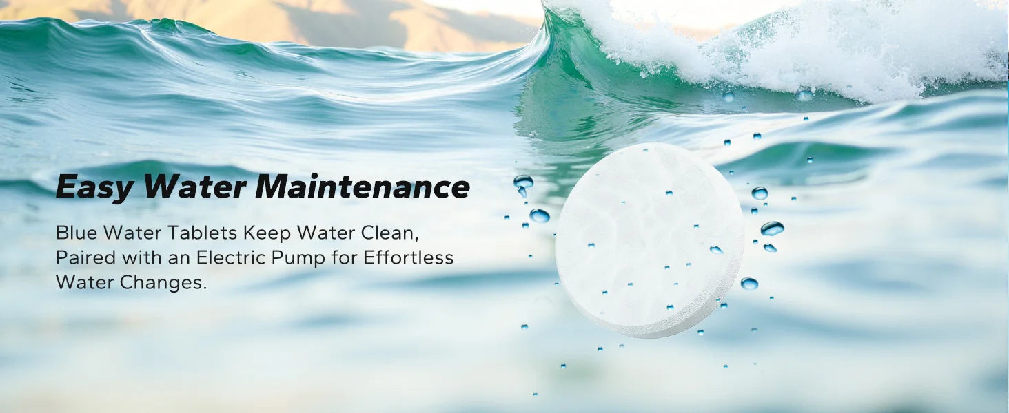 - Leak-proof large water tank with aerospace-grade sealing to prevent leaks, even when stored upright