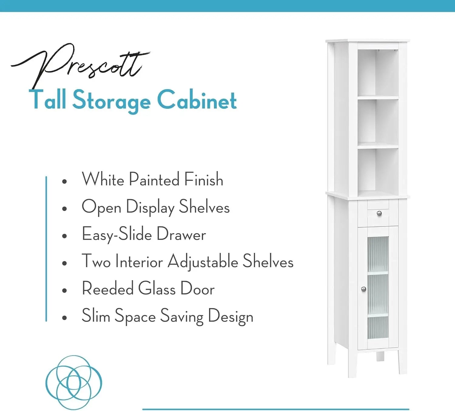 With overall dimensions of 11.75" wide x 13" deep x 60" high, this tall cabinet makes the most of limited floor space. The reeded glass door provides a touch of sophistication while keeping items visible yet protected from humidity.