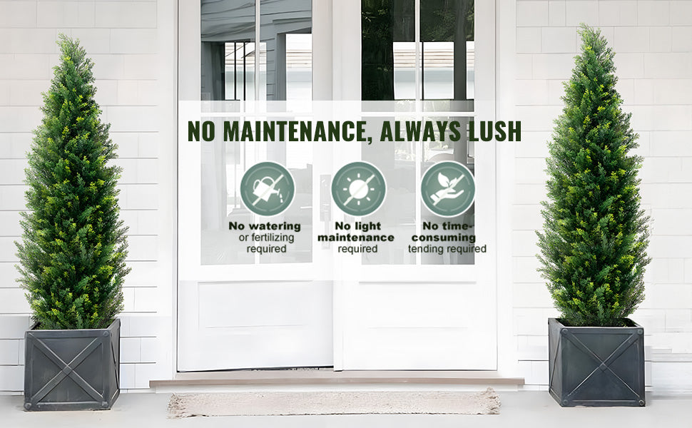 - Maintenance-free outdoors no watering, fertilizing, or pruning required. UV fade resistance helps the greenery stay vibrant even in direct sun.