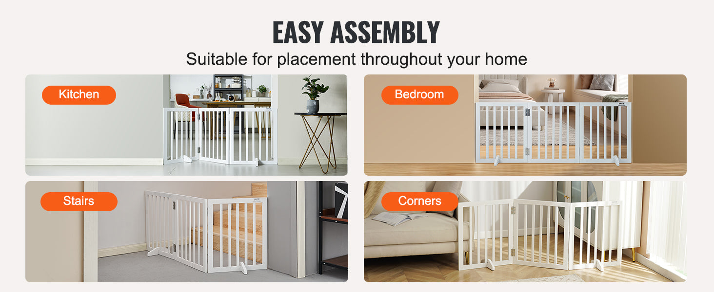 No installation required. The freestanding design lets you place the gate in any room, instantly creating a safe boundary for pets without drilling or mounting. When not in use, it folds down compactly for easy storage in cabinets or under the bed. And when you need it again, it unfolds quickly to fit your space.