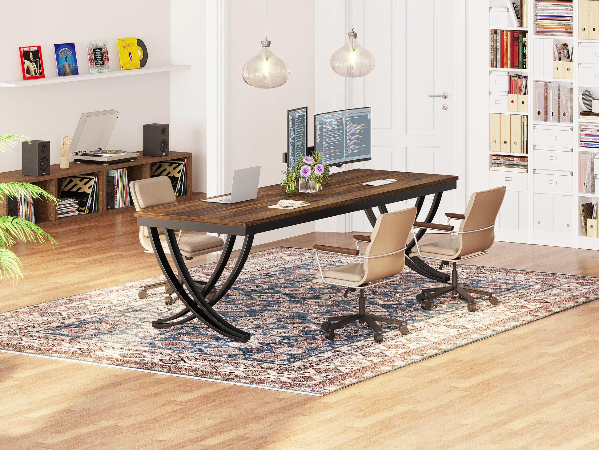 Versatile for any setting: Whether you’re working from home, hosting a small meeting, or outfitting a professional office, this double desk delivers an organized, efficient workspace with an unmistakable industrial aesthetic.