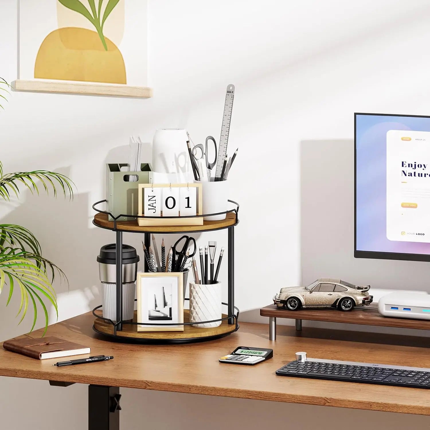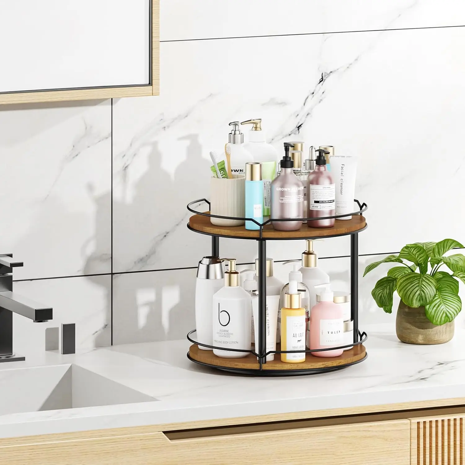 Crafted from natural wood, this organizer brings warmth and longevity to daily use. The raised rims help prevent spills during rotation, while a sturdy bolt-inserting design provides a stable, wobble-free platform that stands up to regular daily tasks. Its versatile finish seamlessly blends with rustic, modern farmhouse, and contemporary interiors alike.