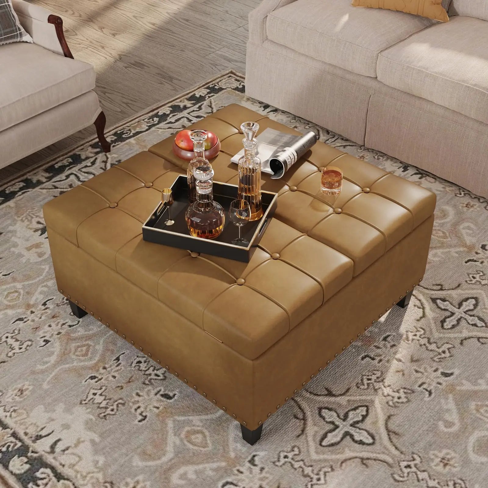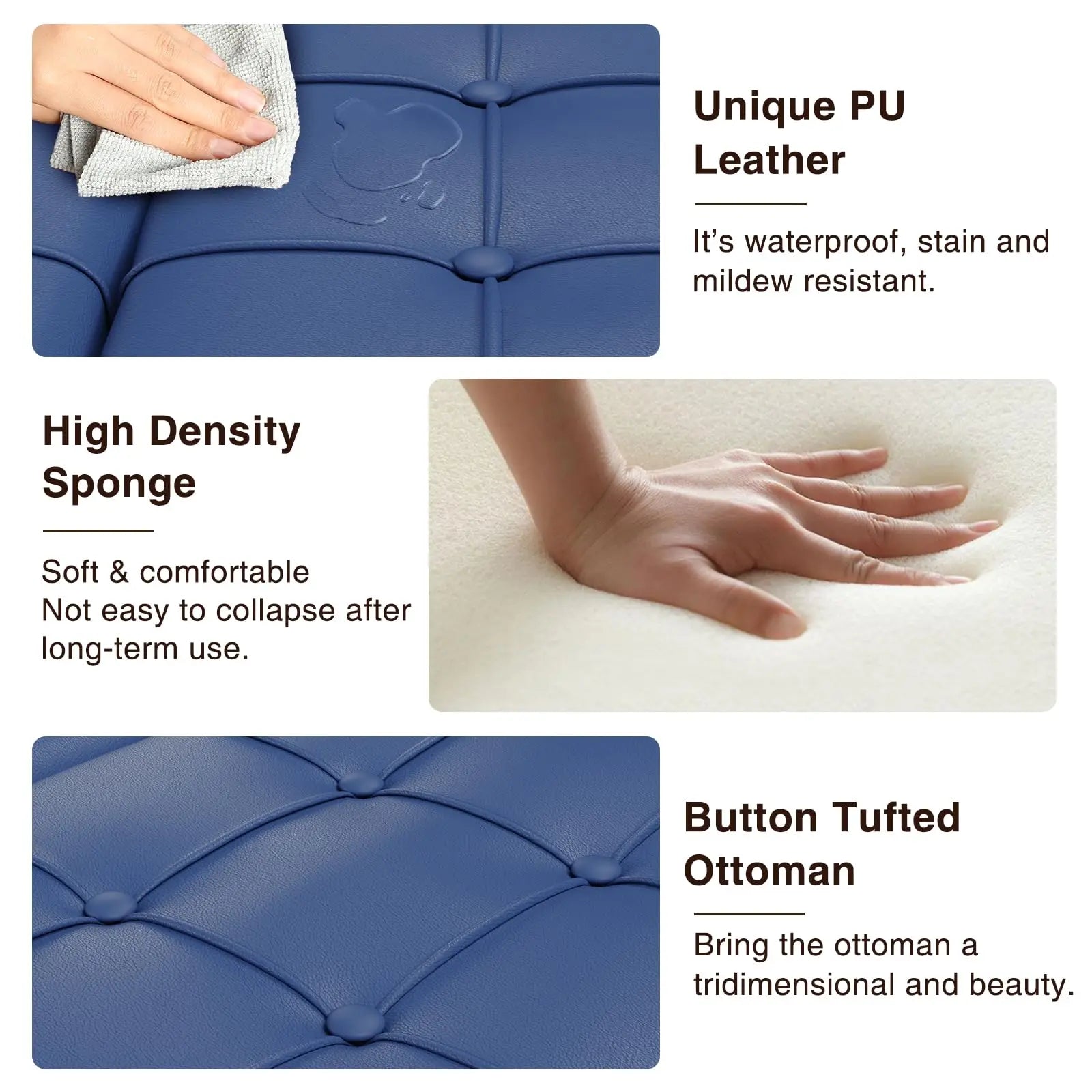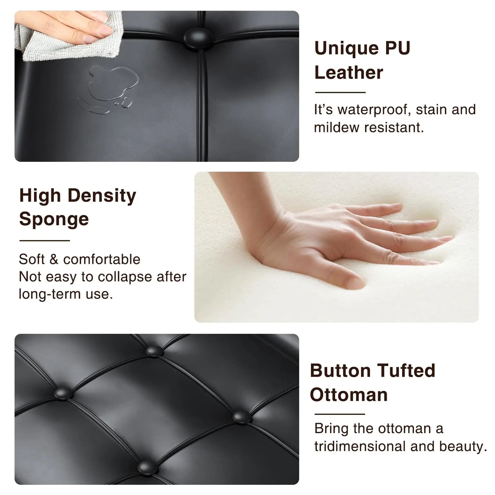 - Crafted finish: tufted top, faux leather, and riveted edge detailing for a premium look